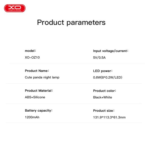 ویژگیهای چراغ خواب شارژی XO OZ10 Panda: